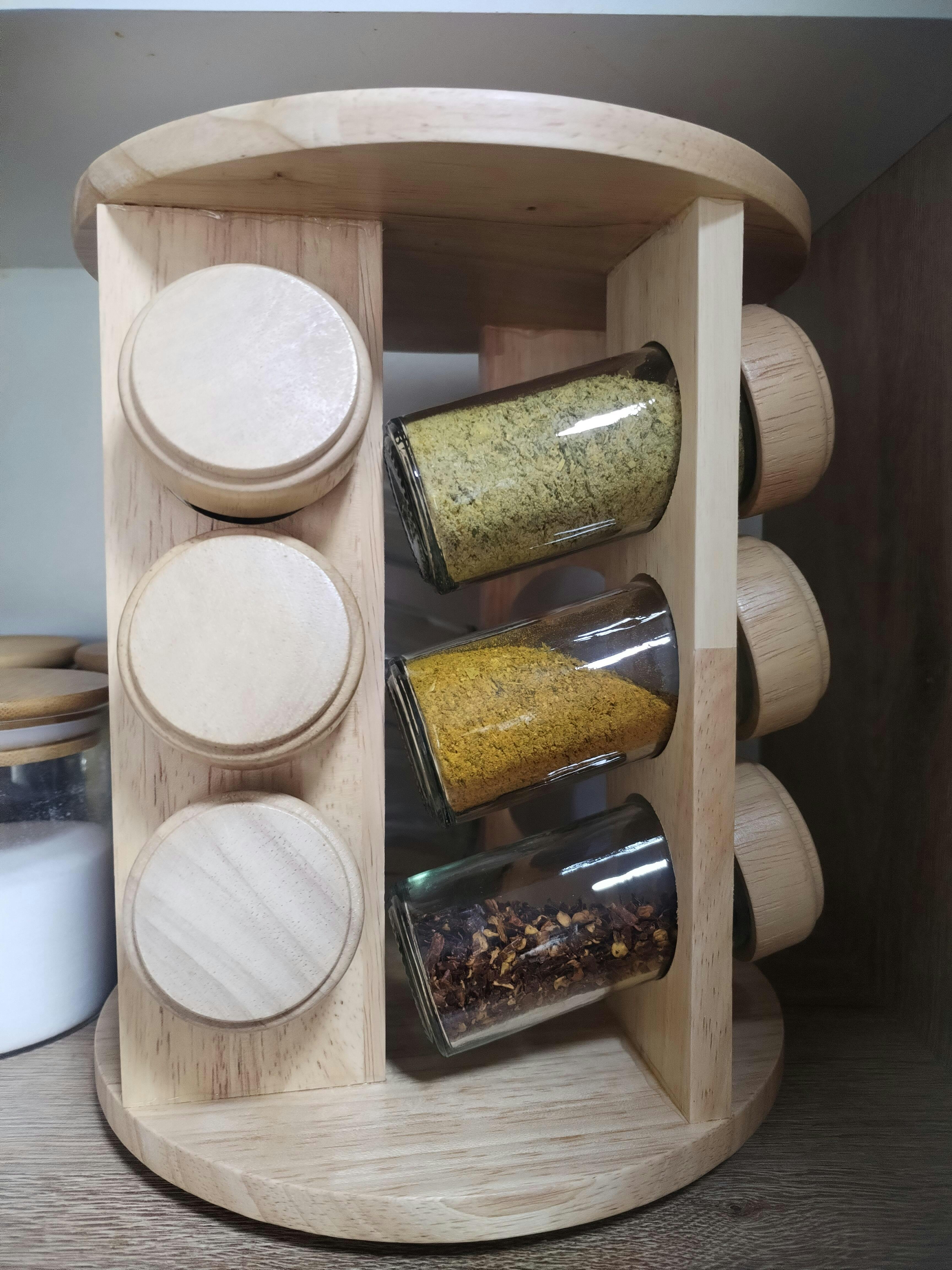 ¡Organiza tu cocina con estilo y facilidad! Si estás cansado de buscar tus especias entre un montón de frascos,¡Nuestro especiero de madera es la solución perfecta para ti! Con su diseño elegante y compacto, este especiero no solo te ayudará a mantener tu cocina ordenada, sino que también se convertirá en un elemento decorativo.